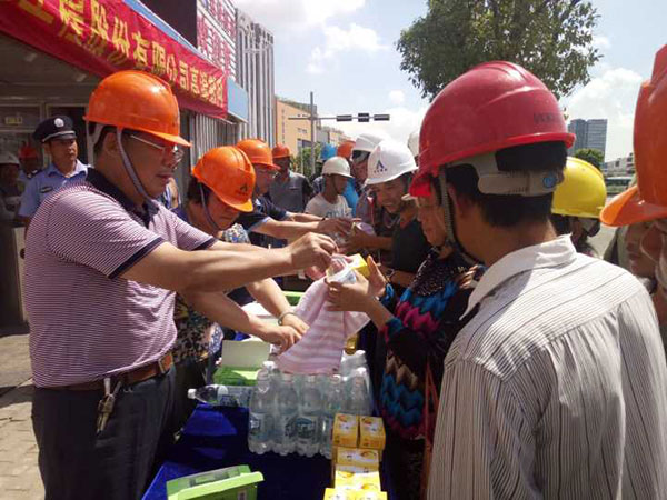 在慰問活動中,劉厚純書記每到一處都向堅(jiān)守崗位的一線員工表示親切慰問,與項(xiàng)目經(jīng)理進(jìn)行交談,詳細(xì)了解項(xiàng)目施工情況和工人的生活情況。他要求各項(xiàng)目部要切實(shí)關(guān)心一線作業(yè)人員的安全和健康,采取有效措施,合理調(diào)整工作時(shí)間,確保將防暑降溫工作落到實(shí)處,確保員工身體健康,確保生產(chǎn)安全。