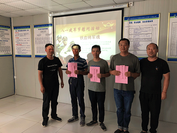 丁國(guó)東經(jīng)理向全體消防官兵和社區(qū)工作人員致以節(jié)日的問(wèn)候并送上慰問(wèn)品,感謝他們一直以來(lái)在維護(hù)社會(huì)穩(wěn)定,保護(hù)群眾生命財(cái)產(chǎn)安全、支持企業(yè)建設(shè)等方面作出的巨大貢獻(xiàn),同時(shí)表示我們作為江蘇進(jìn)新疆企業(yè),將積極配合好當(dāng)?shù)卣案髦鞴懿块T,為地方和諧穩(wěn)定發(fā)展做出應(yīng)有的貢獻(xiàn)。消防支隊(duì)政委、社區(qū)書記對(duì)我公司的到來(lái)表示感謝,希望今后繼續(xù)保持“軍民一家親”的深情友誼,為共同構(gòu)建和諧穩(wěn)定的新疆作出貢獻(xiàn)。