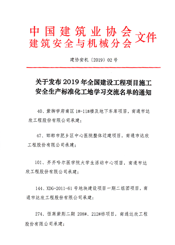 “全國建設工程項目施工安全生產標準化工地”由中國建筑協(xié)會建筑安全分會在全國范圍內組織開展的大型評選活動,是國家建設部批準的全國范圍內建筑安全文明施工領域的最高獎項,旨在規(guī)范施工安全生產工作,保障建筑職工生命安全與健康。此項殊榮的獲得,將進一步提高了集團項目的標準化管理水平,營造良好的安全生產氛圍,為提升企業(yè)形象、促進企業(yè)長遠發(fā)展奠定堅實的品牌基礎。
