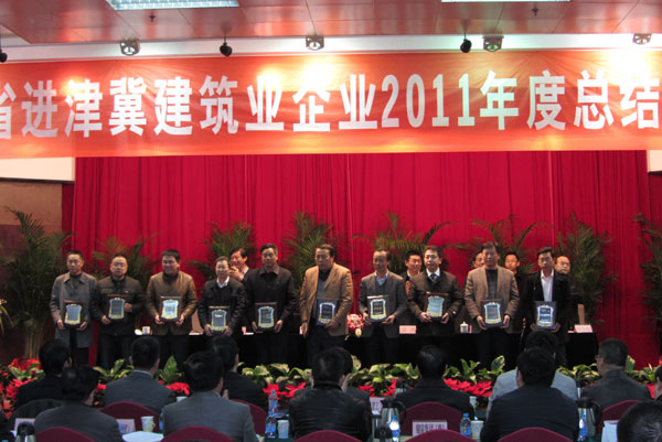 會議對2011年度江蘇省進津、進冀建筑施工企業(yè)優(yōu)秀項目部、優(yōu)秀建造師和先進工作者進行了表彰和頒獎,第四工程公司安居東城B標段項目部、第六工程公司唐山鳳城國際廣場項目部被授予“2011年度江蘇省進津冀建筑業(yè)企業(yè)優(yōu)秀項目部”,第四、第六工程公司的張維琪、傅海榮、朱玉平、陳仁富4位同志被授予“2011年度江蘇省進津冀建筑業(yè)企業(yè)優(yōu)秀建造師”,楊靜、江慶華等12名同志被授予“先進工作者”。