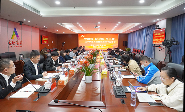 陳琳主持會議,他首先對各位媒體記者的到來表示誠摯的歡迎,在講話中指出:近年來,達欣集團在市場經(jīng)營、深化改革、強化黨建建設(shè)、企業(yè)文化、履行社會責(zé)任、促進共同富裕等方面得到了廣泛贊譽和海安市委、市政府的肯定。當(dāng)前,達欣集團正處在企業(yè)高質(zhì)量發(fā)展的新征程上,希望通過媒體宣傳讓達欣的特色黨建綻放耀眼光芒,讓達欣的精彩故事傳向四面八方,讓達欣高質(zhì)量發(fā)展的動人樂章響徹五湖四海。