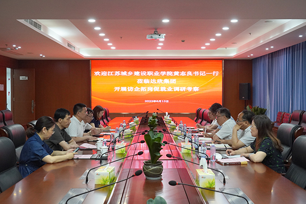 王邦國總經(jīng)理對黃志良書記等校方領導的一行蒞臨調(diào)研指導,表示熱烈的歡迎。他結合行業(yè)形勢,就達欣近幾年的發(fā)展情況以及市場開拓、未來發(fā)展等內(nèi)容作了介紹,他表示,達欣與江蘇城鄉(xiāng)建設職業(yè)學院結緣多年,雙方在理念、共識上有高度的契合點,希望雙方在接下來的合作中,不斷尋找產(chǎn)教融合的新方向和新途徑,共同發(fā)展、合作共贏。