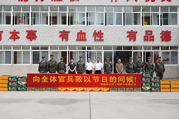 為慶祝中國人民解放軍建軍96周年,大力弘揚愛軍擁軍的光榮傳統(tǒng),推動軍民融合發(fā)展,7月31日,達欣集團黨委、工會聯(lián)合海安市人武部組織魯班傳人志愿服務(wù)隊成員來到武警南通支隊執(zhí)勤二大隊海安中隊開展“愛國擁軍‘欣’向黨,共敘軍民魚水情”擁軍慰問活動,集團在海領(lǐng)導劉厚純、楊靜參加活動。