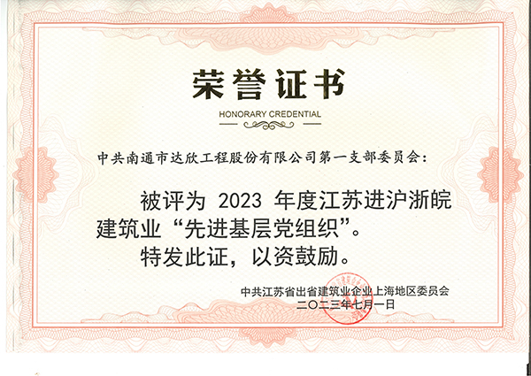 近日,從江蘇省住房和城鄉(xiāng)建設(shè)廳駐上海辦事處傳來喜訊,集團(tuán)第一黨支部委員會被評為“2023年度江蘇進(jìn)滬浙皖建筑業(yè)先進(jìn)基層黨組織”榮譽(yù)稱號,倪志榮同志獲“全省住房和城鄉(xiāng)建設(shè)行業(yè)優(yōu)秀共產(chǎn)黨員”、馬寧偉同志獲“江蘇進(jìn)滬浙皖建筑業(yè)優(yōu)秀共產(chǎn)黨員”、陳元國同志獲“江蘇進(jìn)滬浙皖建筑業(yè)優(yōu)秀黨務(wù)工作者”。