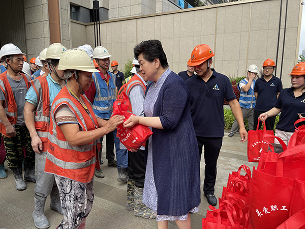 葛玉琴深入施工現(xiàn)場(chǎng),看望慰問(wèn)了高溫下堅(jiān)守崗位的一線(xiàn)職工,為他們送上慰問(wèn)用品,并叮囑大家注意安全,做好防暑降溫工作。她說(shuō),防暑降溫是夏季重要?jiǎng)趧?dòng)保護(hù)工作,直接關(guān)系廣大勞動(dòng)者的身體健康和企業(yè)的安全生產(chǎn)。她希望,大家共同努力,讓安全意識(shí)更加深入人心,切實(shí)筑牢安全屏障,項(xiàng)目部要合理安排作業(yè)時(shí)間,做好防暑應(yīng)急措施,切實(shí)維護(hù)建設(shè)者勞動(dòng)安全健康權(quán)益。