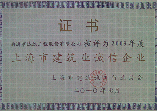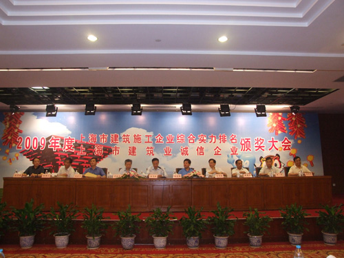 2010年7月30日,2009年度上海市建筑施工企業(yè)綜合實(shí)力及上海市建筑業(yè)誠信企業(yè)頒獎大會在青松城會議中心召開。出席會議的有上海市建委、上海市建管辦、市場管理總站、施工行業(yè)協(xié)會、各省滬辦領(lǐng)導(dǎo)以及獲獎企業(yè)共四百多人參加。