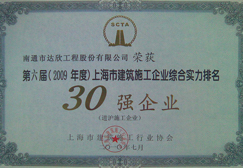 達(dá)欣股份首次挺進(jìn)進(jìn)滬施工企業(yè)前30強(qiáng)(進(jìn)滬施工的江蘇企業(yè)僅有八家),這標(biāo)志著公司跨入了進(jìn)滬強(qiáng)企的第一方陣,標(biāo)志著公司進(jìn)滬施工進(jìn)入了新階段!同時公司還再次榮獲了“上海市建筑業(yè)誠信企業(yè)”稱號。上海市的主流媒體“解放日報”、行業(yè)報刊“建筑時報”均予以報導(dǎo)。