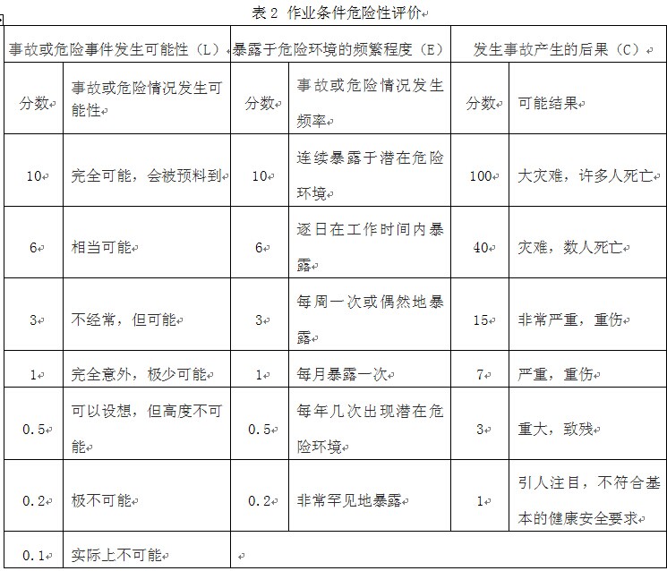 表2 作業(yè)條件危險(xiǎn)性評價(jià)