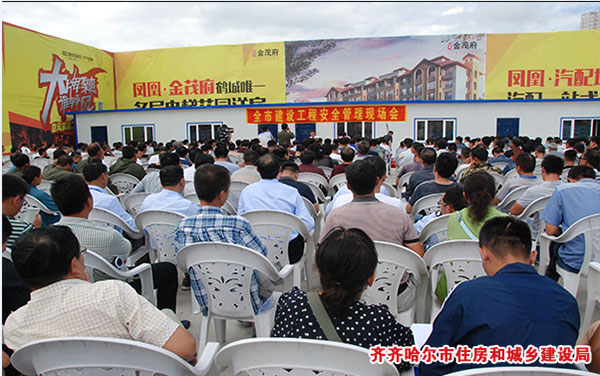 8月25日上午,齊市建設(shè)安全管理現(xiàn)場會在我公司施工總承包的鳳凰?金瑞府項目舉行。市住建局黨委書記、局長黃宇、市住建局黨委委員副局長王紳,全市各縣(市)區(qū)住建局主管副局長、安全站站長,在建工程建設(shè)、監(jiān)理、施工區(qū)企業(yè)負(fù)責(zé)人,企業(yè)安全負(fù)責(zé)人、總監(jiān)理工程師、安全監(jiān)理工程師、項目負(fù)責(zé)人、技術(shù)負(fù)責(zé)人500多人參加會議。