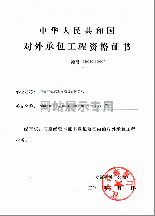 1月28日,公司獲得江蘇省商務(wù)廳頒發(fā)的“對(duì)外承包工程資格證書”,由此為走出國(guó)門承接工程、派遣勞務(wù)獲得了市場(chǎng)準(zhǔn)入許可,同時(shí)也為公司積極拓展更大的發(fā)展空間奠定了基礎(chǔ)。這是公司積極策應(yīng)“一帶一路”國(guó)家戰(zhàn)略的市場(chǎng)選擇,也是公司面對(duì)新常態(tài)形勢(shì)下,我國(guó)固定資產(chǎn)投資下滑,國(guó)內(nèi)需求增長(zhǎng)放緩,建筑業(yè)僧多粥少的產(chǎn)能過剩問題越顯突出的發(fā)展抉擇。